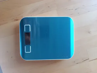 Báscula de cocina IKEA en color azul. Ideal para pesar ingredientes con precisión. - Diseño moderno y funcional. - Plato desmontable para facilitar la limpieza.