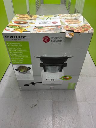 Gemini said Monsieur Cuisine Connect - SilverCrest (Lidl) ¡El robot de cocina más buscado! Vendo Monsieur Cuisine Connect de SilverCrest, en su embalaje original y con todos sus accesorios incluidos (vaporera, cesta, mariposa, espátula). Un aliado perfecto para ahorrar tiempo cocinando de forma guiada y sencilla. Cuenta con pantalla táctil de 7 pulgadas, conexión Wi-Fi para descargar recetas y funciones de báscula, amasar, cocción al vapor y mucho más. El robot está en perfecto estado y listo para usar. Hago envíos rápidos por Wallapop. ✨
