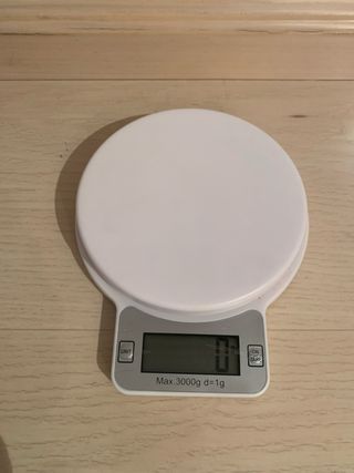 Báscula digital con un atractivo diseño efecto madera. Esta con la caja, ya que no se usado mucho, estos en perfecto estado como se puede ver en las fotos - Capacidad máxima de 5 kg. - Precisión de 1 gramo. - Botón de Tara, para poder reiniciar el peso