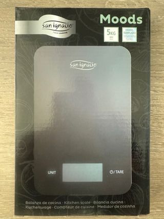Báscula de cocina San Ignacio moods en color negro nueva a estrenar . 22x14,5x2,5cm - Pantalla digital