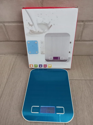 Báscula electrónica para cocina digital con un diseño moderno y elegante. Ideal para medir ingredientes con precisión. - Superficie de pesaje metálica. - Pantalla digital de fácil lectura. - Plataforma de pesaje de cristal. - Peso máximo admitido 5kg. En su caja original con instrucciones. HAGO ENVIOS. Entrego en Ciudad Pegaso cerca del centro comercial Plenilunio y Estremera zona de La Vega.
