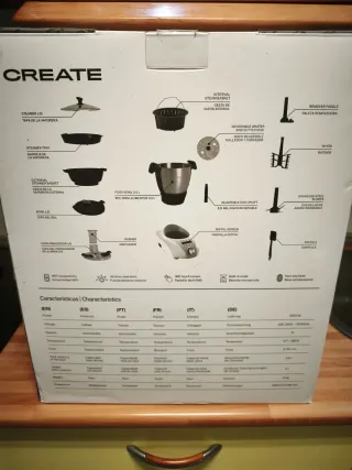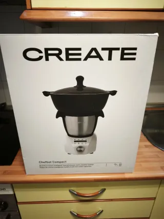 Vendo robot de cocina CREATE Chefbot Compact, ideal para cocinar fácil y rápido en el día a día. ✔ Potencia 1500 W ✔ Bol de acero inoxidable 3,5 L ✔ Pantalla digital táctil ✔ Báscula integrada ✔ 10 velocidades, temporizador y control de temperatura ✔ Función cocción al vapor Incluye todos los accesorios: Cesta vaporera interna y externa Cuchillas de acero inoxidable Batidor Espátula Disco rallador y cortador reversible Muy intuitivo y fácil de usar, diseño compacto y base antideslizante. Perfecto para sopas, cremas, masas, salsas, verduras al vapor y mucho más.