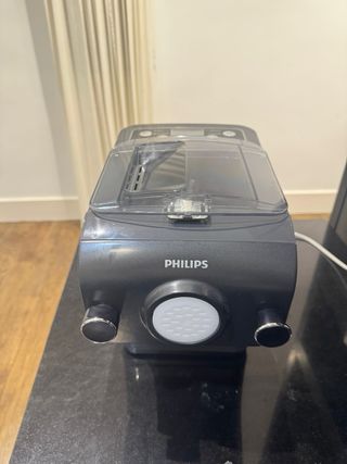 Vendo mi Philips Pasta Maker por mundanza. Es el modelo avanzado que pesa los ingredientes automáticamente, garantizando que la textura de la masa sea siempre perfecta. La máquina está impecable, como se ve en las fotos. El compartimento de amasado y la varilla están perfectamente limpios y sin desgaste. Ha tenido muy poco uso doméstico. Ubicacion: Madrid Retiro 28009