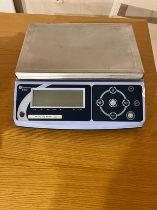 Báscula electrónica Baxtran modelo FFN, de uso profesional, en perfecto estado de funcionamiento. Ha estado en uso hasta ahora y funciona sin fallos. Plataforma superior metálica, muy resistente, con pantalla digital clara y manejo sencillo. Ideal para hostelería, comercio, obrador o cocina profesional. Características: • Marca: Baxtran • Modelo: FFN • Capacidad máxima: 3 kg • Precisión: 1 g • Plataforma metálica • Alimentación por cable (incluido) Se entrega en persona