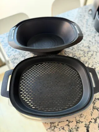 Descripción del anuncio Estado de reestreno real. Vendo robot de cocina Mambo 10070 por falta de uso. Se ha utilizado únicamente en 4 ocasiones contadas, por lo que tanto el motor como las cuchillas están impecables, de fábrica. ¿Qué incluye el pack? • Robot Mambo 10070 con báscula integrada y conexión Wi-Fi (App móvil). • Jarra de acero inoxidable de 3,3L (impecable, sin marcas de quemado). • TODOS los accesorios originales: Cuchara MamboMix (para masas), mariposa, cestillo de hervir, vaporera de dos niveles con tapa, cuchillas de acero y espátula. • Caja original en buen estado, ideal para transporte o regalo. Precio negociable.