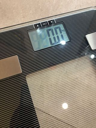 Báscula digital RUNSTAR de cristal negro, ideal para el seguimiento de tu salud. Se conecta a una aplicación móvil y es compatible con smartwatch. - Diseño moderno en cristal negro. - Pantalla digital clara. - Incluye app para seguimiento de datos.Mide porcentaje de grasa. - Compatible con smartwatch. Nunca usada,solo abierto para comprobar contenido.
