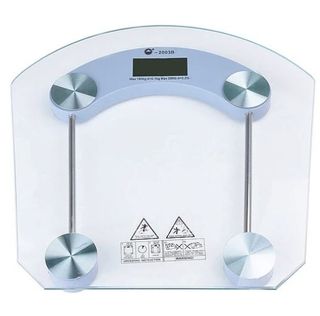 Báscula digital de diseño moderno con superficie de cristal. - Indicador digital. - Marca: OK. - Capacidad máxima: 150 kg.