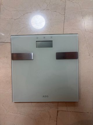 Vendo báscula digital AEG en perfecto estado de funcionamiento. Diseño moderno con superficie de cristal templado, muy estable y fácil de limpiar. Cuenta con sensores metálicos para una medición precisa y pantalla digital clara. • Marca: AEG • Funcionamiento: a pilas • Estado: bueno, uso normal, sin golpes ni roturas • Diseño fino y elegante, ocupa poco espacio