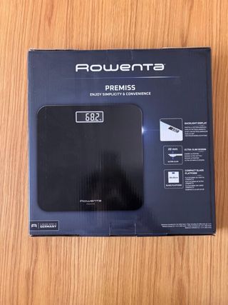 Báscula digital Rowenta Premiss de diseño moderno y elegante. - Superficie de cristal templado. - Pantalla LCD de fácil lectura. - Diseño plano y compacto. - Pila Recién comprada como se ve en la foto