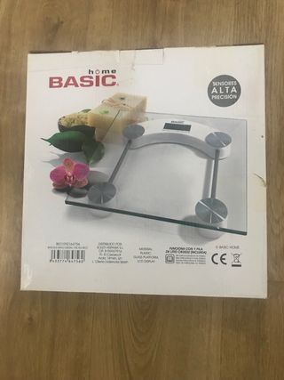 Báscula de baño digital Basic Home con plataforma de cristal. - Sensores de alta precisión. - Material: Plástico y cristal. - Pantalla LCD. - Funciona con 1 pila de litio CR2032 (incluida).