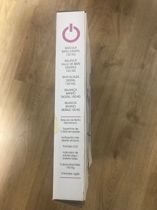 Báscula de baño digital con superficie de cristal grueso de 1.5 cm. - Diseño moderno y elegante. - Pantalla LCD de fácil lectura. - Capacidad máxima de 180 kg. - Pilas incluidas. - Medidas en fotos. - Pequeño roce, inapreciable, en esquina (ver última foto).