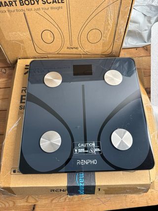 Producto nuevo. Báscula digital Renpho con superficie de cristal. Encendido automático al pisarla.