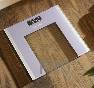 Báscula digital de la marca Posture con superficie de cristal. - Pantalla digital. - Diseño moderno. - Conexión a app Fridays para seguimiento de salud.