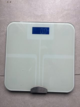 Báscula digital inteligente con pantalla LCD. - Calcula la composición corporal, incluida la medición de grasa. - APP para el móvil para seguir progreso y establecer objetivos. - Máximo de peso: 180 kg. - Precisión: 50 g. - Mide 26x26cm y 2.3cm de altura. - Color Negro - Utiliza 2 baterías AAA (no incluidas) - Mide en lb y kg - Es de cristal templado a prueba de estallidos - Diseño moderno y elegante. - NUEVA, jamás usada.