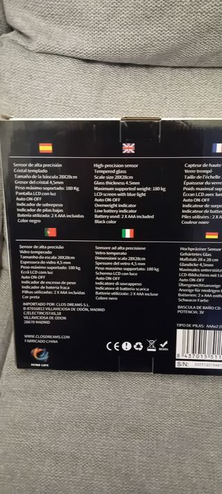 ¡A estrenar! Vendo báscula de baño digital marca Euro Life (Modelo CD-28B). Diseño elegante en color negro con superficie de cristal templado de 4,5mm. Características principales: • Capacidad: Hasta 180 kg. • Precisión: Sensor de alta precisión (50g). • Pantalla: LCD retroiluminada de fácil lectura. • Extras: Auto ON/OFF, indicador de batería baja y sobrepeso. • Pilas: Incluye 2 pilas AAA. Lista para usar. Compacta (28x28cm) y muy ligera.