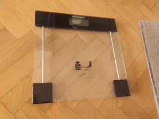 Báscula digital con plataforma de cristal. - Diseño moderno y elegante. - Pantalla LCD de fácil lectura. - Plataforma de cristal templado. Le falta la tapita de la pila, pero por lo demás está perfecta y funciona perfectamente.