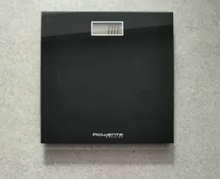 Báscula de baño digital Rowenta con superficie de cristal templado negro. - Diseño moderno y elegante. - Pantalla digital de fácil lectura. - Función inteligente de encendido y apagado automático - Funciona con una pila de botón (no incluida)