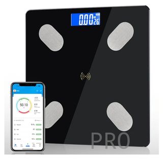 Báscula de grasa corporal, báscula digital con aplicación inteligente, báscula de análisis corporal con Bluetooth, para grasa corporal, IMC, masa muscular, proteínas, BMR, 26 cm x 26 cm