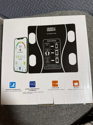 Báscula digital inteligente Runstar para el hogar. Permite medir 13 métricas esenciales de composición corporal. - Diseño moderno y pantalla digital. - Superficie antideslizante. - Marca: Runstar. Es totalmente nueva y sin usar. Se hacen envios pero no se aceptan devoluciones.