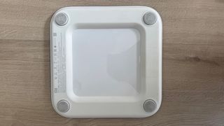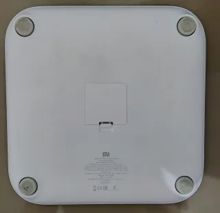 Báscula digital blanca de la marca Xiaomi. Diseño moderno y minimalista. - Superficie lisa y fácil de limpiar. - Cuatro sensores antideslizantes en la base.