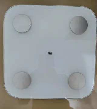 Báscula inteligente Xiaomi Mi Body Composition Scale 2. Diseño moderno y minimalista. - Superficie de vidrio templado. - Pantalla LED integrada. - Cuatro sensores de alta precisión que mejora el rendimiento con una sensibilidad de hasta 50 g. - Bluetooth 5.0 para una conexión más rápida y estable. - Gráficas en la aplicación, cálculo IMC y otros datos para seguir tu evolución. - Modo invitado y memoria para 16 personas. - Se puede utilizar para pesar objetos pequeños inmóviles de tan solo 100 g. Funciona perfectamente y en muy buen estado. Le falta la tapa de las pilas. No impide que funcione sin inconvenientes.