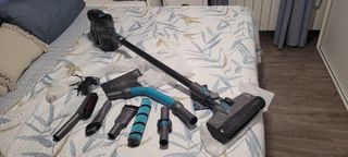 Aspiradora vertical escoba sin cables Conga RockStar 500 de Cecotec con libro de instrucciones,todos sus accesorios, cabezales a estrenar y en perfecto estado ( solo se uso 1 cabezal). 3 niveles de potencia, ligera y manejable, se mete por cualquier rincon ya que es de cabezal basculante. Nos toco otra similar en un sorteo este verano