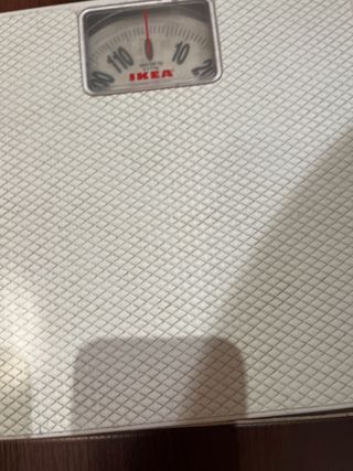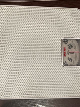 Báscula mecánica de la marca IKEA. Su diseño es clásico y funcional. - Esfera analógica con números grandes. - Indicador de peso rojo.