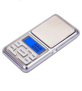 Producto NUEVO Se hacen ENVIOS y entrega en MANO Báscula digital de alta precisión, compacta y fácil de usar. - Rango de pesaje: 0.01g a 500g. - Pantalla LCD azul. - Botones: UNITS, PCS, ON/OFF, TARE, LIGHT. - Superficie de pesaje metálica.