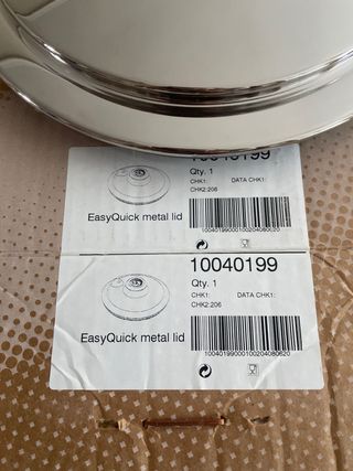 Tapa oval super vapor para ollas AMC 38cm sin usar con su embalaje original - Fabricada en metal y plástico. - Color plateado y negro.