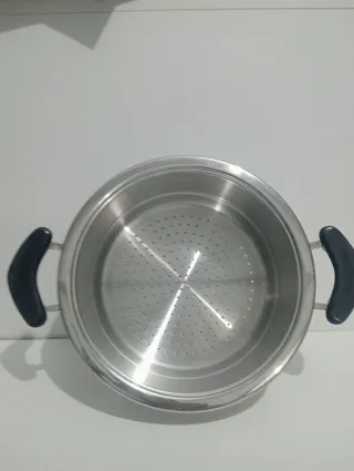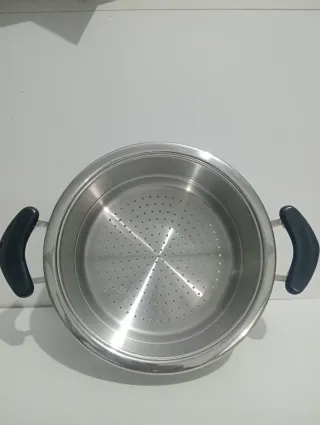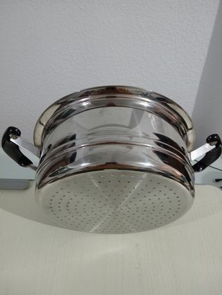 Olla vaporera de acero inoxidable 18/10.mide 27,5 c. diam. y 12cm. alta,y 4,5 litros de capacidad .no hago envíos.