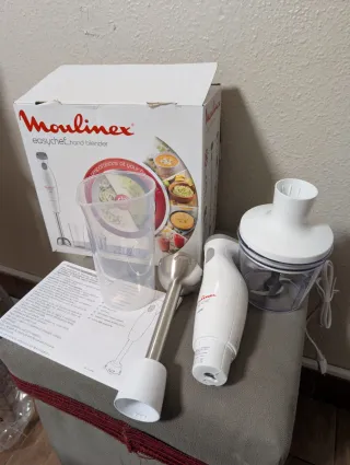 Batidora de mano Moulinex Easychef en color blanco. - Incluye vaso medidor. - Varilla desmontable de acero inoxidable. - Mini picador. - Diseño compacto y ligero.