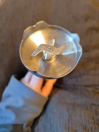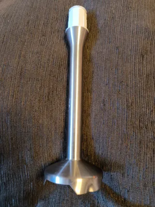 Brazo para batidora de mano fabricado en acero inoxidable. - Diseño alargado y estilizado. - Base con cuchillas para triturar. - Parte superior con acabado blanco.