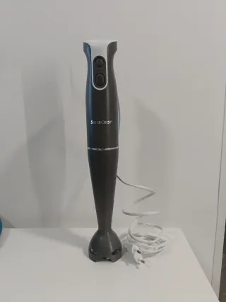 Batidora de mano SilverCrest en color gris. Su diseño ergonómico facilita su uso. - Mango con acabado mate. - Botones de control en la parte superior. - Cable de alimentación blanco. - Apenas se ha usado