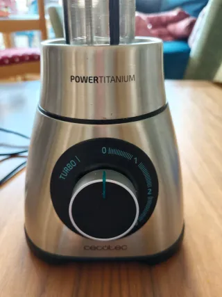 Batidora de vaso Cecotec con potente motor. - Modelo: PowerTitanium. - Potencia: 2000W. - Material: Acero inoxidable. - Velocidades: 0, 1, 2, 3, 4,5 y Turbo.