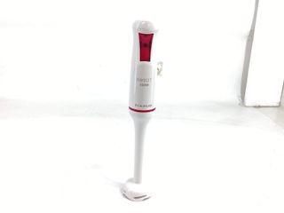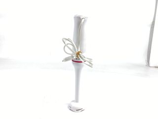 Batidora de mano con diseño alargado y mango blanco. - Varilla de acero inoxidable. - Mango ergonómico de plástico blanco. - Cable de alimentación.