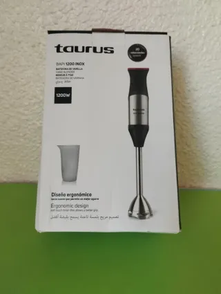 Batidora de mano Taurus BAPI 1200W Inox. Sin usar, completamente nueva. - Potencia de 1200W. - Diseño ergonómico para un mejor agarre. - Acabado en acero inoxidable.