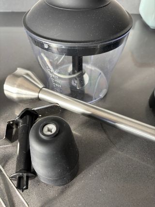 Conjunto de accesorios para batidora de mano Cecotec de 1500W. - Varillas batidoras. - Varilla batidora de inmersión. - Mini picador. - Vaso medidor.