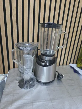 Batidora de vaso de cristal con una potencia de 1000W. - Jarra de cristal. - Diseño moderno en acero inoxidable y negro. - Panel de control con selector de velocidad.