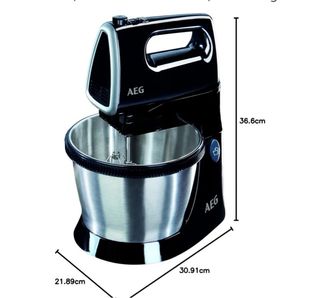 Amasadora batidora de la marca AEG, modelo SM3300, en color negro. Cuenta con un bol de acero inoxidable. AEG SM3300 - Batidora Amasadora de Varillas con Bol - Serie 3, 350W, 5 Velocidades, Función Turbo, Bol Giratorio de 3,5L, Apta para Lavavajillas, Varillas Batidoras, Varillas Amasadoras, Color Negro - Diseño moderno y funcional. - Bol de acero inoxidable. - Marca: AEG - Modelo: SM3300 Usada solo 1 vez, impecable, completamente nueva, soy muy cuidadosa. La vendo por comprar la thermomix