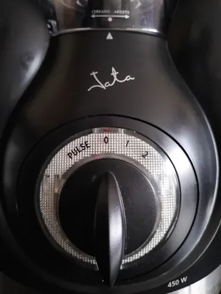 Batidora JATA modelo BT461 con función picadora de hielo. Su diseño es moderno y funcional. - Jarra de plástico transparente con medidor. - Asa ergonómica para un agarre cómodo. - Base negra con selector de velocidad y botón Pulse. - Cable de alimentación enrollado.