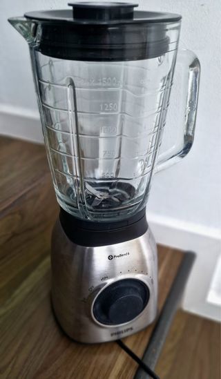 Batidora de vaso Philips ProBlend 6 con jarra de cristal. - Jarra de cristal con marcas de medición. - Base de acero inoxidable. - Control de velocidad giratorio.