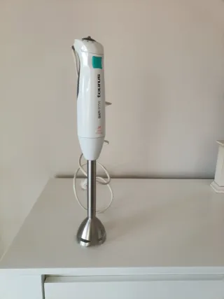 Tiene dos usos. La vendo porque me han regalado Thermomix y no la uso . La compré hace 1 mes en amzon y nueva vale 70€ Todos los accesorios incluidos - Cuerpo principal de acero inoxidable. - Vaso medidor. - Picador. - Varillas para montar. - Pie para batidora.