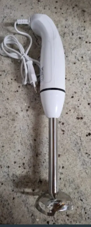 Batidora de mano blanca con diseño ergonómico y cable de alimentación.400w, esta como nuevo - Cuerpo de plástico blanco. - Varilla de acero inoxidable. - Cuchillas de acero inoxidable.