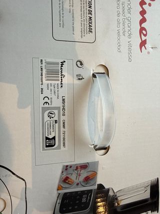 Batidora de vaso Moulinex PerfectMix con una capacidad de 2 litros y 1200W de potencia. Muy poco usada. En caja original y con manual. Precio original 140€ (reprecintada). El accesorio para remover sin levantar la tapa no va incluido (se rompió). Igualmente se puede remover fácilmente parando la batidora. Ideal para smoothies, cremas o batidos diarios. 3 programas automáticos (smoothie, hielo picado y limpieza), selector de velocidad retroiluminado y ventosas para buen agarre. Cuchillas de acero inoxidable extraíbles para una limpieza rápida y sistema de refrigeración por aire que prolonga la vida útil del motor.