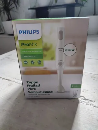 Batidora de mano Philips ProMix de la colección Daily Collection. Ideal para preparar sopas, batidos y purés de forma sencilla. Sin abrir, perfecta para regalo. - Potencia de 650W. - Incluye vaso medidor.