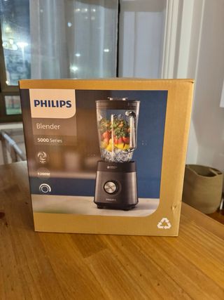 Batidora Philips Serie 5000 en color negro. Potente y elegante para tu cocina. - Potencia de 1200W. - Diseño moderno y funcional. - Jarra de gran capacidad. Es la mas grande y mas potente. Se ha regalado por reyes y ni se ha abierto para conservarla en perfecto estado de embalaje para su venta.