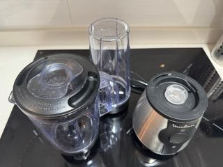 Batidora Moulinex Blend&Go con accesorios. - Base del motor. - 750 ml. - Vaso grande. - Vaso pequeño con cuchillas.