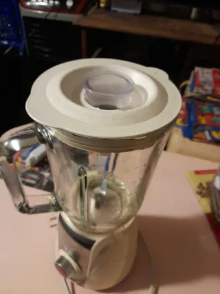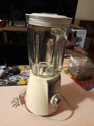 Batidora de gran capacidad con jarra de cristal. Funciona perfectamente. - Jarra de cristal resistente. - Base con acabado metálico y crema. - Control de velocidad con dial. 15€ llama telf 631 62 18 96 Gracias John