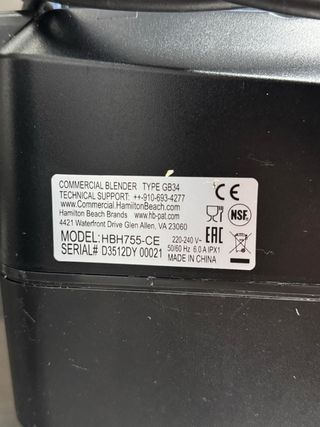 Se vende licuadora batidora industrial., marca hamilton beach RIO., modelo HBB250., SE HACEN ENVÍOS., nueva cuesta 465 euros lo puedes ver en última foto., Funciona perfectamente., 230v., 450w., jarra de policarbonato., capacidad 1,25L., tiene 4 velocidades una fija una manual una lenta y otra rápida., ancho 17., fondo 22., alto 41 centímetros., industrial profesional hostelería restaurante bar cocina cafetería heladería sumos ect ect