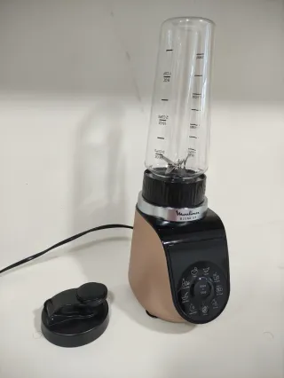 Batidora de vaso Moulinex Blend Up con 8 programas distintos. Incluye vaso de 700ml con tapa. Está como nueva, se ha usado muy pocas veces. Se compró en abril de 2025 y se entrega con el tiquet de compra para realizar cambios si fuese necesario.